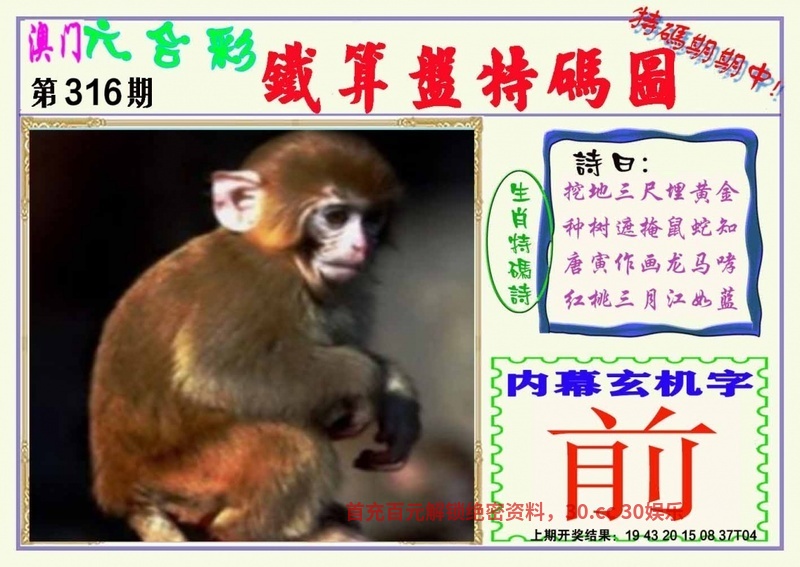 | 316期:精解铁算盘中特图 必中九肖:猪牛虎马羊鼠龙鸡猴 必中五肖:猪牛虎马羊 平特一尾:222 |